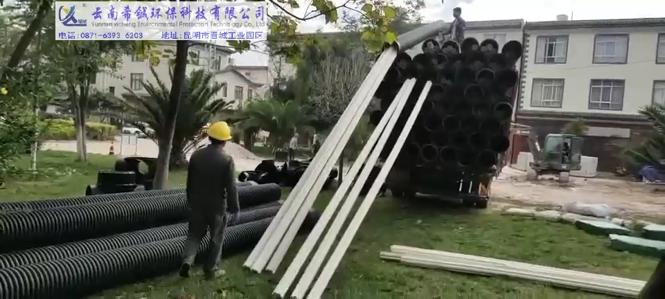 采用規格:HDPE中空壁纏繞管客戶工地位置:保山云南方特(希鋮)環保科技有限公司昆明市